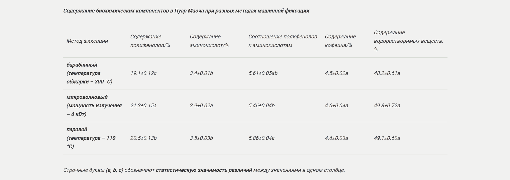Влияние разных методов фиксации на органолептические характеристики Пуэр Маоча
