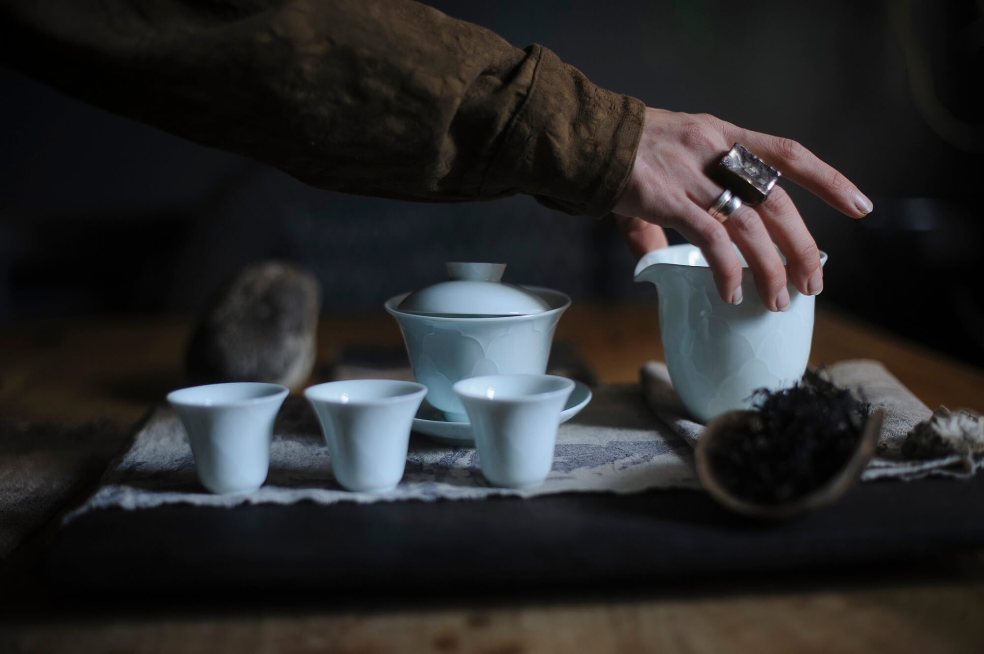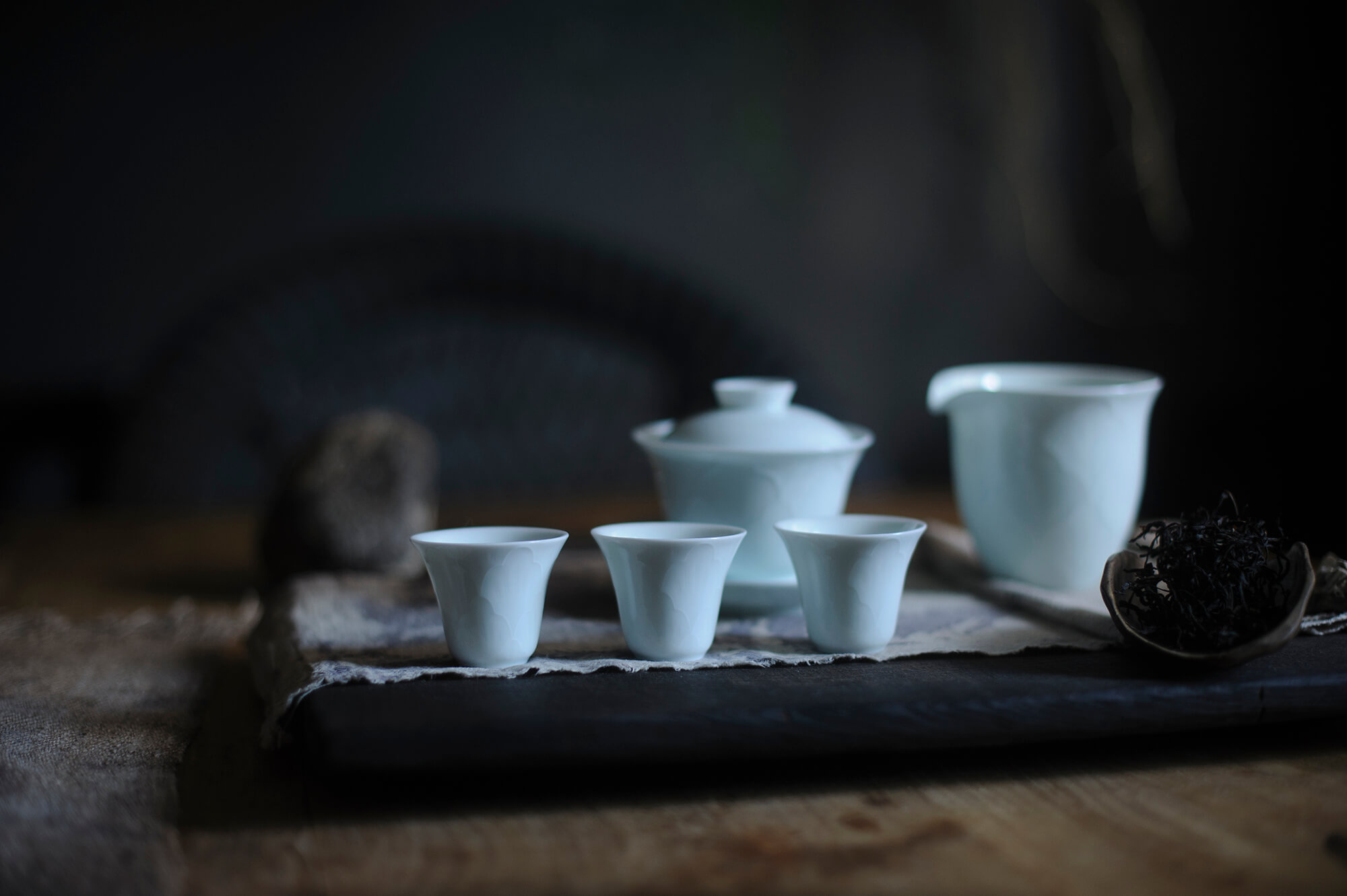 Изящный, переливающийся синевой, вновь переходящий в белый в зависимости от освящения, он отлично подходит для заваривания тонких чаев с динамичными ароматами.